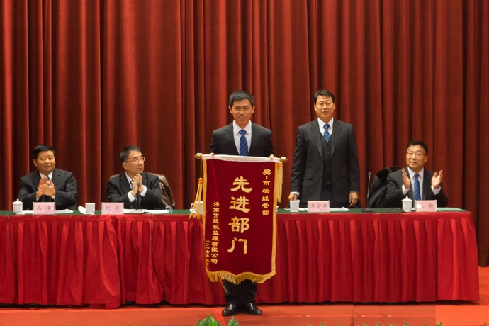 會議在莊嚴的國歌聲中開始,公司黨委書記、董事長兼總經理林峰代表黨委及董事會致辭,回顧總結了2016年的各項工作,細數了各部門、各單位的亮點及不足,制定了公司2017年工作計劃。林總指出二〇一六年是極不平凡的一年,在惡劣的市場環境下,公司很好的完成了全年各項任務目標,經營工作再創歷史新高,內部管理更上一層樓,這是各部門、各單位艱苦努力的結果,但今后經濟下行趨勢未變,市場形式不容樂觀,仍需全體職工認清形勢,適應形勢,緊跟形勢,通過不斷的總結與反思,以飽滿的熱情、扎實的作風、全身心的投入工作,迎接新挑戰,創造新成績。