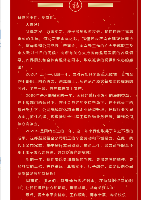 凝心聚力 逐夢前行——濟南監理黨委書記、董事長林峰春節致辭