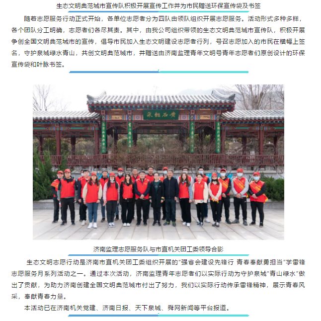 “學雷鋒精神 護青山綠水”——濟南監理青年志愿者參加市直機關團工委助力生態文明志愿行動