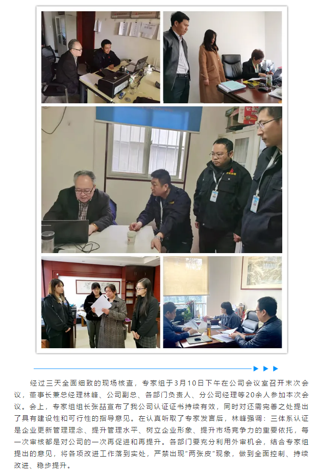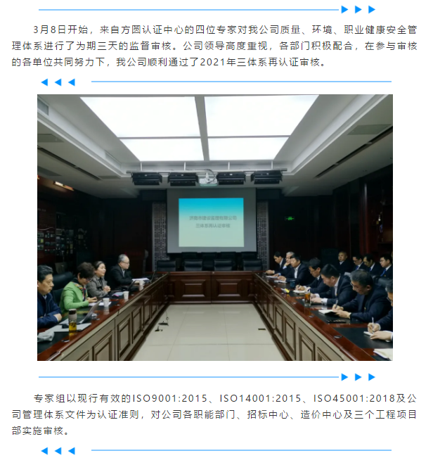 更新管理理念 提升管理水平 推進高質量發展——公司順利通過2021年三體系再認證審核