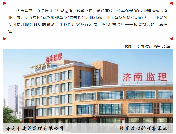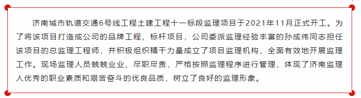 公司獲評濟南軌道交通集團建設投資有限公司2021年度“優秀監理單位”